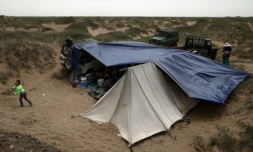 A child of a local herdsman plays near his tent home. Photo: CFP