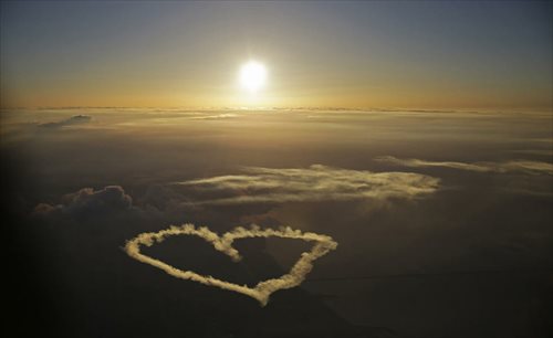 A giant heart is written over New Orleans by skywriter Nathan Hammond, at sunset May 2, 2015. We cannot always prevent disasters from happening, but we are all human, and as one family we will always have hope by our side. Photo: yangtse.com - qq.com