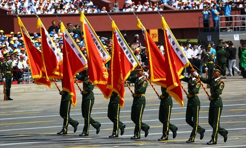 Soldiers march during a parade in Beijing on September 3 to mark the WWII victory. Photo: Zhang Siyang/GT