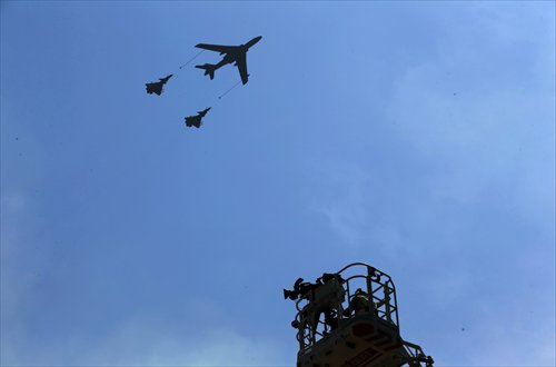 PLA aircraft fly over the parade. Photo: Cui Meng/GT