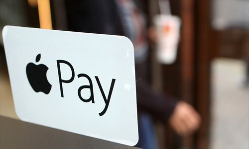 An Apple Pay logo on display at a restaurant in London in July for the UK launch of the mobile payment service. Apple aims to launch Apple Pay in China in early 2016. Photo: CFP