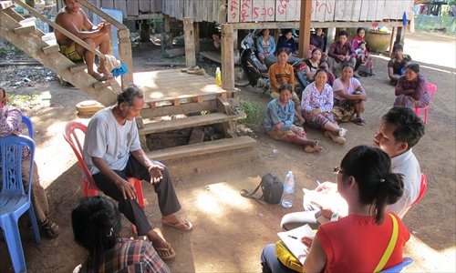 Villagers from Srekor 1 and 2 villages talk about their attitudes of the Lower Sesan 2 project. Photo: Wang Wenwen/GT