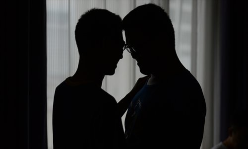 Many gay people are no longer shy about showing intimacy in China. Photo: CFP