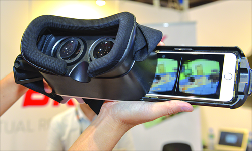 A 3D virtual reality sex toy with handheld controllers and a smartphone app exhibited at the 3rd annual Asia Adult Expo 2015 in Hong Kong on August 27. Photo: IC
