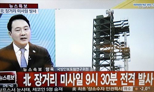 A video grab taken on Feb. 7, 2016 from South Korean TV shows the news report on the launch of a long-range rocket by the Democratic People's Republic of Korea (DPRK), in Seoul, South Korea. The DPRK on Sunday launched a long-range rocket as planned, Yonhap news agency reported citing South Korea's defense authorities. Photo: Xinhua