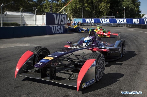 British driver Sam Bird of DS Virgin team competes during 2016 FIA Formula E Buenos Aires ePrix, in Buenos Aires, Argentina, on Feb. 6, 2016. Sam Bird claimed the title with 45:28.385. (Xinhua/Martin Zabala)