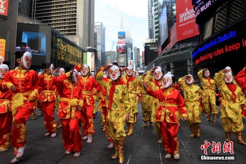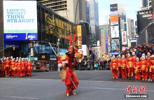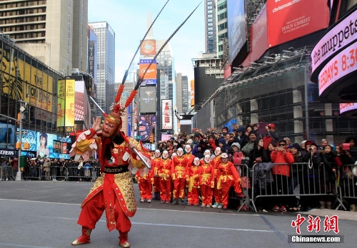 Monkey King performs at Times Square to celebrate Chinese New Year