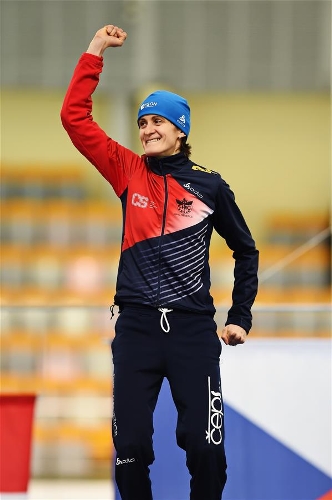 KOLOMNA, Feb. 12, 2016 (Xinhua) -- Czech speed skater Martina Sablikova celebrates victory during 3000m distance in World Single Distances Speed Skating Championships in Kolomna, Russia, on Feb. 11, 2016. Martina Sablikova claimed the title with 4:03.05. (Xinhua/Evgeny Sinitsyn) 10