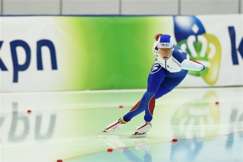 KOLOMNA, Feb. 12, 2016 (Xinhua) -- Russian speed skater Olga Graf competes in 3000m distance during World Single Distances Speed Skating Championships in Kolomna, Russia, on Feb. 11, 2016. World Single Distances Speed Skating Championships took its start on Feb. 11, 2016, in Kolomna, Russia. (Xinhua/Evgeny Sinitsyn)