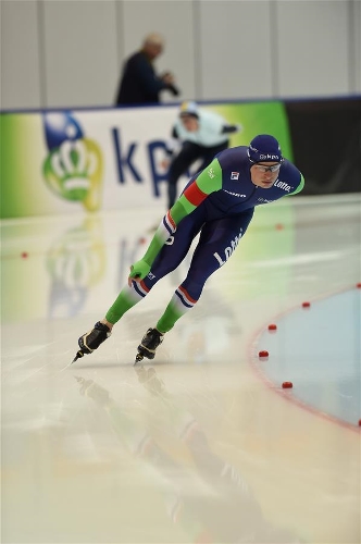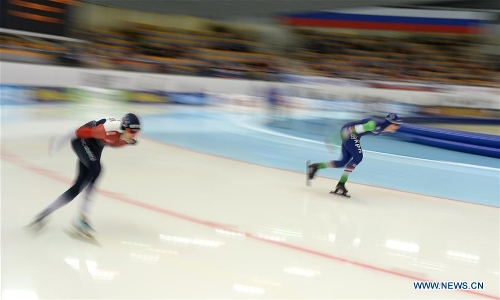 KOLOMNA, Feb. 12, 2016 (Xinhua) -- Dutch speed skater Sven Kramer competes in 10000m distance at World Single Distances Speed Skating Championships in Kolomna, Russia, on Feb. 11, 2016. Sven Kramer claimed the title in 12:56.77. (Xinhua/ Evgeny Sinitsyn) 12