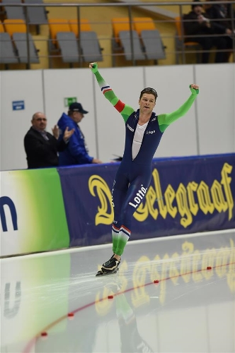 KOLOMNA, Feb. 12, 2016 (Xinhua) -- Dutch speed skater Sven Kramer celebrates after 10000m distance at World Single Distances Speed Skating Championships in Kolomna, Russia, on Feb. 11, 2016. Sven Kramer claimed the title with 12:56.77. (Xinhua/Evgeny Sinitsyn) 14