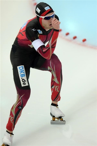 KOLOMNA, Feb. 12, 2016 (Xinhua) -- Patrick Beckert of Germany competes in men's 10000m distance during World Single Distances Speed Skating Championships in Kolomna, Russia, on Feb. 11, 2016. (Xinhua/Pavel Bednyakov)