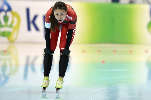 KOLOMNA, Feb. 12, 2016 (Xinhua) -- Zhao Xin of China competes in women's 3000m distance during World Single Distances Speed Skating Championships in Kolomna, Russia, on Feb. 11, 2016. (Xinhua/Pavel Bednyakov)