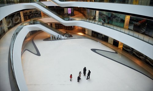 People walk in an almost empty shopping mall in Beijing on Monday. Chinese trade slumped in January, authorities said on Monday, as both exports and imports tumbled with feeble domestic and global demand dragging on the world's second-largest economy. Photo: AFP