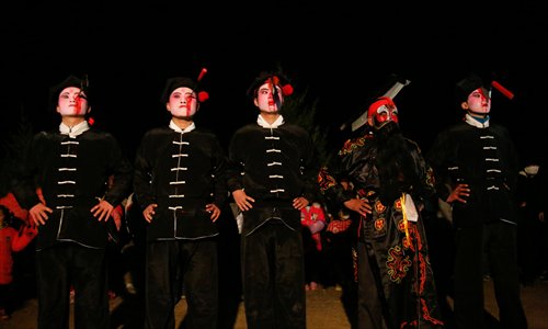Xue Shehuo performers display their horrifying costumes during a show in Yanjiaan village in Baoji, Northwest China's Shaanxi Province on February 14. Photo: IC