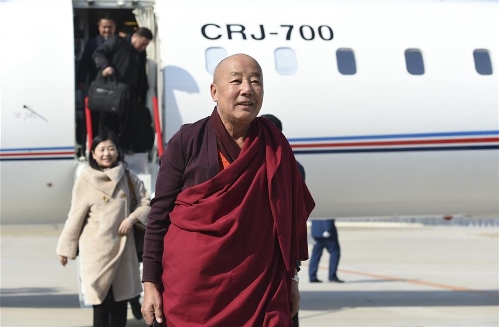 BEIJING, March 1, 2016 (Xinhua) -- Members of the 12th National Committee of the Chinese People's Political Consultative Conference (CPPCC) from northwest China's Gansu Province arrive in Beijing, capital of China, March 1, 2016, for the Fourth Session of the 12th CPPCC National Committee. (Xinhua/Xie Huanchi)