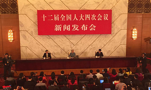 The news conference on the fourth session of the 12th National People's Congress (NPC) is held at the Great Hall of the People in Beijing, capital of China, March 4, 2016. Photo: Wu Yuanchun/GT