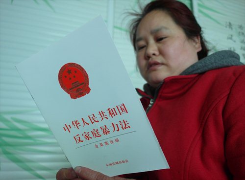 China's first domestic violence laws came into effect after being approved at the Standing Committee of the National People's Congress late last year. Under the new law, domestic violence is defined as physical or psychological harm inflicted by family members and includes assaults, restraints, hurting or restricting someone's liberty, or verbal threats or abuse.