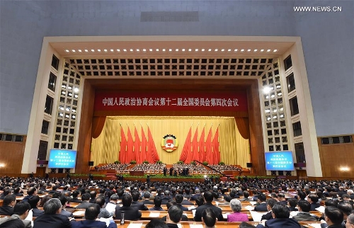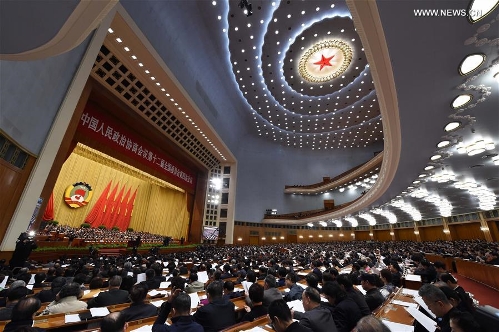 The second plenary meeting of the fourth session of the 12th National Committee of the Chinese People's Political Consultative Conference is held at the Great Hall of the People in Beijing, capital of China, March 10, 2016. (Xinhua/Chen Jianli)