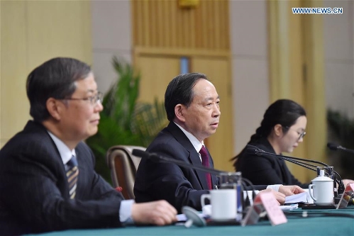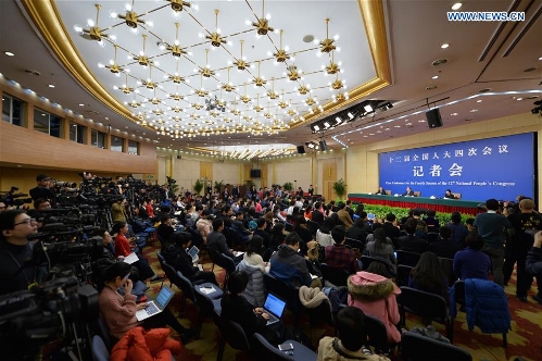 Chinese Education Minister Yuan Guiren gives a press conference about the reform and development of China's eduaction on the sidelines of the fourth session of China's 12th National People's Congress in Beijing, capital of China, March 10, 2016. (Xinhua/Li Renzi)