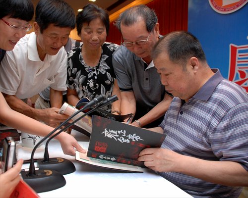 Eryuehe (Right) attends a book signing for fans in Fujian Province on September 14, 2010. Photo: IC