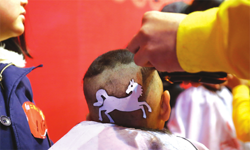 A child has his hair cut at Longtaitou Festival in Hefei, Anhui Province on Thursday. The festival, which means "dragon raises head" in Chinese, is held on the second day of the second month in the Chinese lunar calendar. Getting a haircut on this day portends a vigorous start to the new year. Photo: CFP