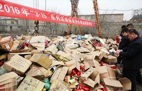 Authorities in Huaibei, East China's Anhui Province destroy fake goods on Tuesday. Photo: CFP