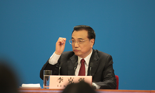 Chinese Premier Li Keqiang speaks at a press conference at the Great Hall of the People in Beijing on March 16, 2016. Photo: Fan Lingzhi/GT