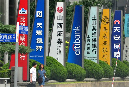 Branches of foreign and domestic financial institutions in Shanghai Photo: IC