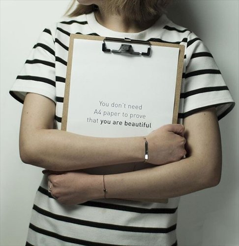 Their responses, hashtagged #stopa4waist to #youarebeautiful, among others, on Instagram and Twitter, show women and men alike holding paper of various sizes bearing messages of encouragement that at the same time manage to cut the standard of beauty to size.