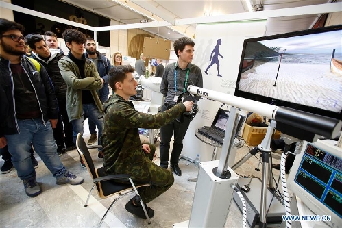 Visitors try at the robots displayed by the Ljubljana University Faculty of Electrical Engineering at the European Robotics Forum 2016 at Cankarjev Dom Cultural and Congress Center in Ljubljana, Slovenia, March 22, 2016. The 7th European Robotics Forum with the theme "Robots and Jobs" is held from March 21 to 23 in Ljubljana. It hosts about 500 particpants and features 60 workshops and 22 exhibitions. The forum aims to explore how robotics can help boost economic growth, create jobs, and enrich human lives. (Xinhua/Luka Dakskobler)