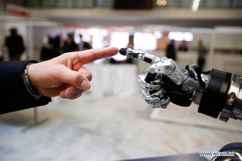 A German-made robotic arm is displayed at the European Robotics Forum 2016 at Cankarjev Dom Cultural and Congress Center in Ljubljana, Slovenia, March 22, 2016. The 7th European Robotics Forum with the theme "Robots and Jobs" is held from March 21 to 23 in Ljubljana. It hosts about 500 particpants and features 60 workshops and 22 exhibitions. The forum aims to explore how robotics can help boost economic growth, create jobs, and enrich human lives. (Xinhua/Luka Dakskobler)