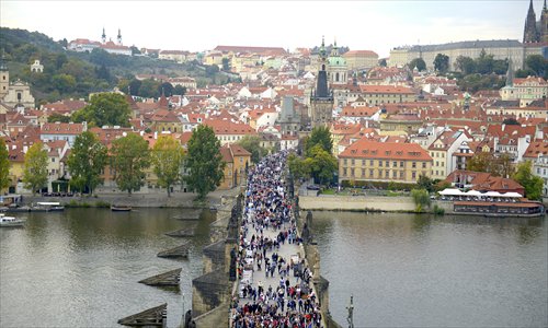 Tourists crowd onto Charles Bridge in Prague, Czech Republic. Photo: IC