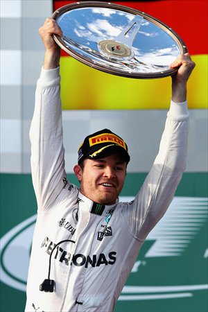 Mercedes driver Nico Rosberg celebrates on the podium after winning the Australian Formula One Grand Prix on March 20 in Melbourne, Australia. Photo: CFP