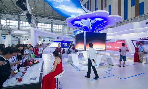 People check out gadgets at a digital expo in Guiyang, Southwest China's Guizhou Province that was held in May 2015 to display the latest big data technologies. Photo: IC