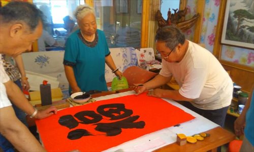 Elderly people practice calligraphy at Happiness Home in Tianjin. Photos: Courtesy of Zhang Chengyong