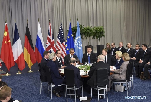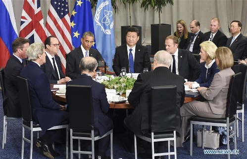 Chinese President Xi Jinping attends a leaders' meeting on the Iranian nuclear issue under a sexpartite framework, in Washington DC, the United States, April 1, 2016. Photo: Xinhua/Xie Huanchi