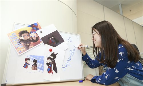 Works by South Korean Superman-Batman fan art illustrator Gihoo, who works under the pen name "Lapuger," are popular in the fan community. Photo: Li Hao/GT