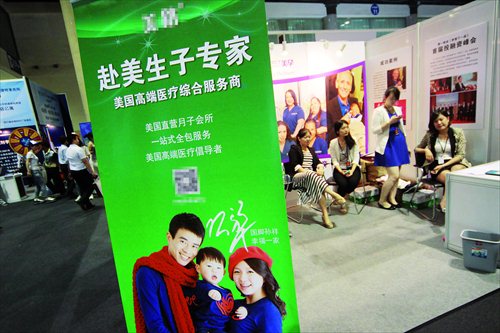 An immigration agency advertises maternity tourism packages at an immigration service fair in 2014. Photo: CFP