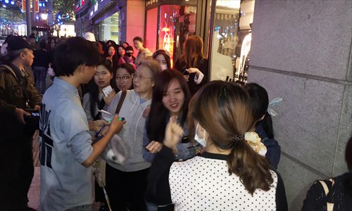 An ayi fan smiles at a photo of her idol, Chinese actor-singer Lu Han. Photo: Li Hao/GT