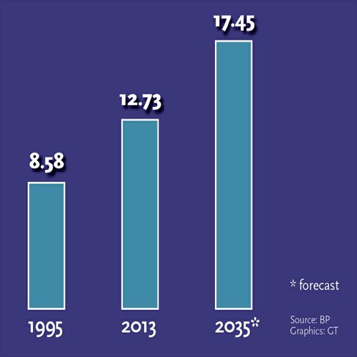 Slowing economic growth and the pursuit of the quality of growth will cause China's energy consumption growth to slow. Growth in the nation's energy demand is expected to average 2 percent a year over the next 20 years, compared with around 8 percent over the past 15 years, according to the BP energy outlook.