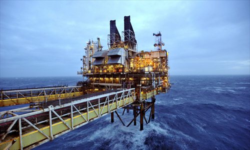 A section of an oil platform of the BP Eastern Trough Area Project in the North Sea File photo: CFP