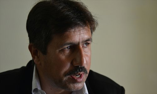 Lawyer Qamar Nadeem, who represents jailed doctor Shakil Afridi, who was imprisoned for his role in helping the CIA identify Osama bin Laden, speaks in Peshawar on April 16. Photo: AFP