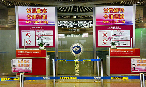 Beijing Capital International Airport officially opened its women-only security lanes in March 2016 after a three-month trial, the Beijing Daily reported.