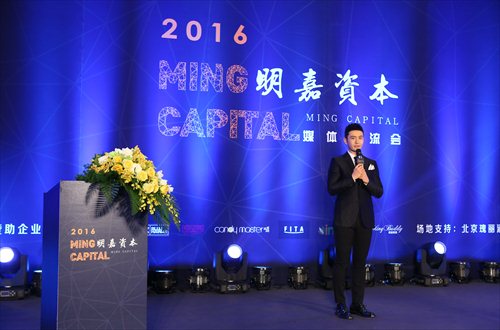 Chinese actor Huang Xiaoming attends a press conference for Ming Capital on April 27 in Beijing. The company, founded two years ago by Huang and a senior investment advisor, focuses on companies involved in consumer goods and entertainment. Photo: Courtesy of Ming Capital