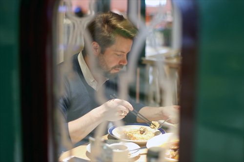 He is quite familiar with using chopsticks. Photo: Yang Hui/GT