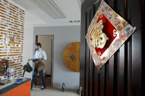 Chinese character Fu (happiness) on the door of his apartment. Photo: Yang Hui/GT