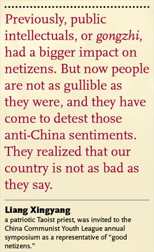 Liang thinks the future is rosy for "patriots." "Previously, public intellectuals, or gongzhi, had a bigger impact on netizens. But now people are not as gullible as they were, and they have come to detest those anti-China sentiments. They realized that our country is not as bad as they say," he said.