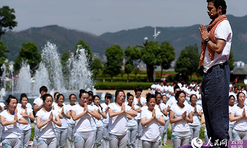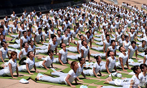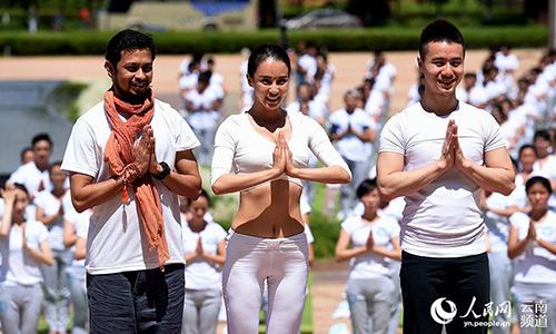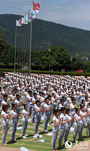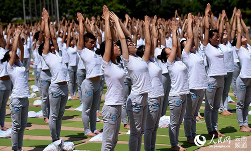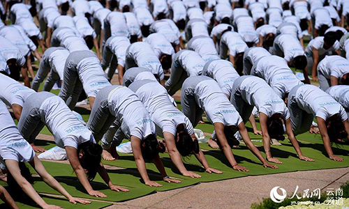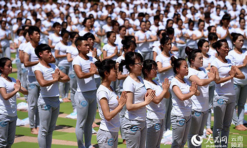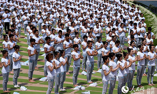 The 2016 China-India Yoga Conference is being held in Kunming, southwest China's Yunnan province from May 18 to May 22. Thousands of yoga masters and students practice yoga together during the event. Photo: People's Daily Online