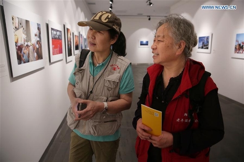 Visitors look at works from Xinhua News Agency during the China International Photographic Art Festival (CIPAF) held in Zhengzhou, capital of central China's Henan Province, May 26, 2016. 738 outstanding works selected from 110 thousand works from 88 countries and regions were displayed during the art festival, which will last for 8 days from May 26 to June 2. (Xinhua/Cai Yang)